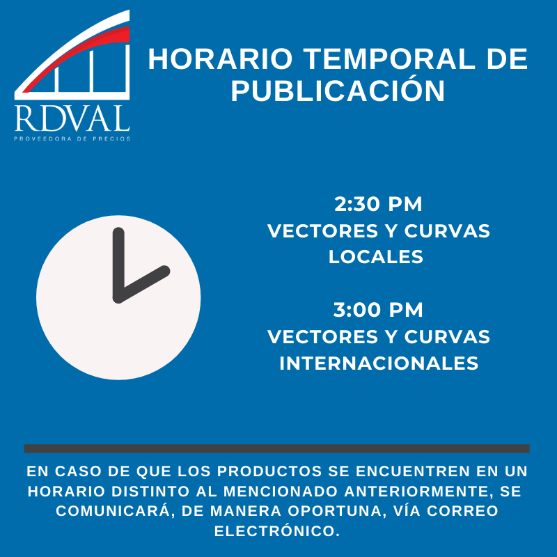 En seguimiento a las medidas tomadas por la Comisión de Alto Nivel para la Prevención y Control del COVID-19 de la Presidencia de la República Dominicana y a la circular de mercado “Plan de Continuidad de la BVRD” de la Bolsa y Mercados de Valores de la República Dominicana, en la cual se dispone un ajuste de horario para las operaciones en los mecanismos de negociación administrados por la BVRD, a partir del lunes 23 de marzo de 2020, tenemos a bien informar el horario temporal de publicación: